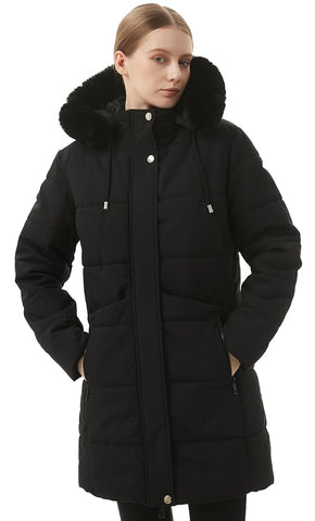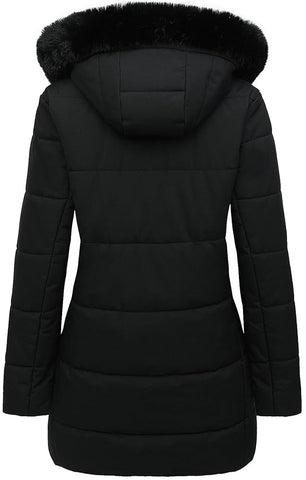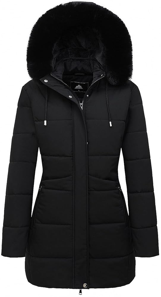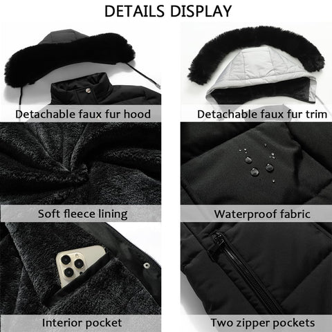MOERDENG Women's Winter Puffer Coat Thicken Fleece Lined Down Jacket Waterproof Faux Fur Detachable Hooded Parka