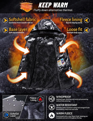 TACVASEN Men's Winter Skiing Jackets Water Resistant Fleece Coats Insulated Thermal Snowboard Jacket Parka Raincoat with Hood