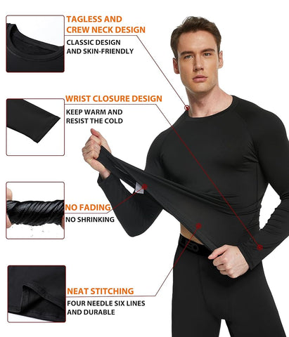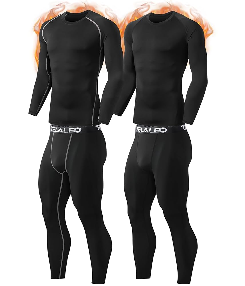 TELALEO 2 Set Mens Thermal Underwear Fleece Lined Long Johns 4 Pcs Base Layer Shirts Pant for Cold Winter Weather